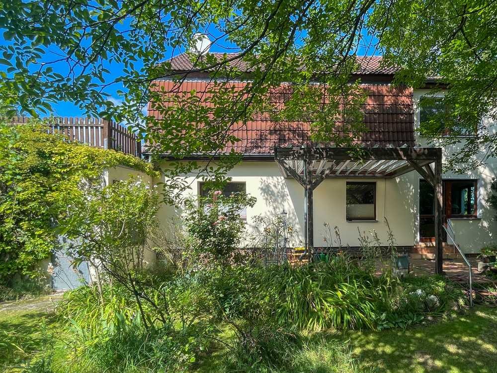 Ein großer Garten umgibt das Haus und bietet vielfältige Nutzungsmöglichkeiten. Eine geräumige Garage sowie ein separater Außenstellplatz bieten ausreichend Platz für Fahrzeuge.