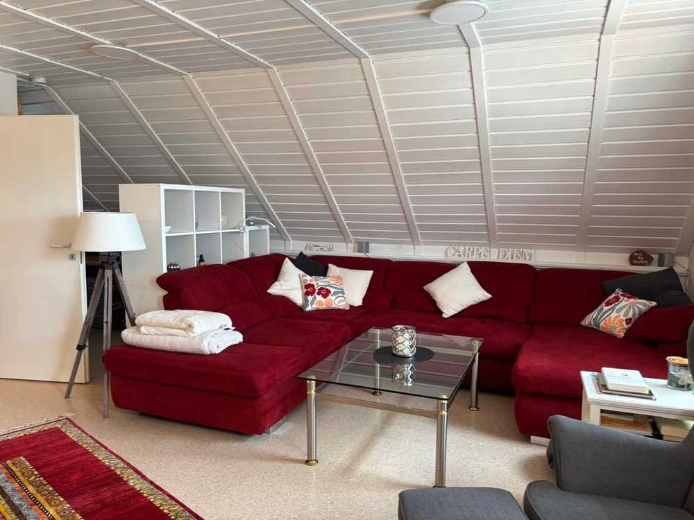 Im oberen Wohnbereich befinden sich der offene Koch- und Essbereich, das Wohnzimmer, zwei Schlafzimmer sowie ein modernes Badezimmer mit Dusche und Badewanne. Das ausgebaute Dachgeschoss eignet sich hervorragend als Spielbereich für Kinder oder gemütlicher Rückzugsort.
