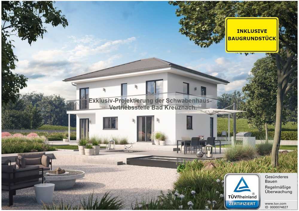 Hier können Sie als Bauherr die Hausbau-Firma SCHWABENHAUS mit der Errichtung eines energieeffizienten Hauses mit Festpreisgarantie und zeitnaher Fertigstellung beauftragen und Ihre Bauwünsche INDIVIDUELL auf einem wunderschönen Baugrundstück verwirklichen, welches Sie vorher direkt „von privat“ erwerben würden. -- Die hier dargestellten Pläne / Grundrisse stellen eine mögliche Bebauung des Grundstücks dar.
