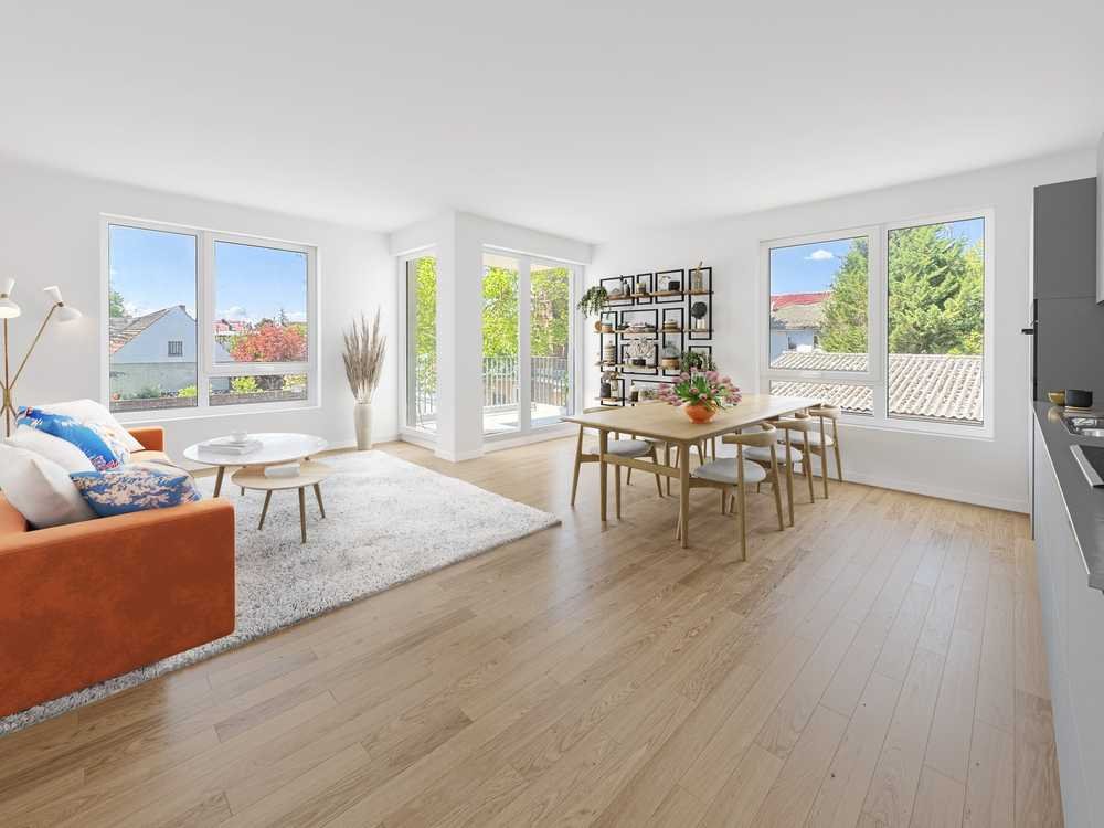 Echtholzparkett, Fußbodenheizung und schallisolierte Fenster mit elektrischen Rollläden garantieren ein angenehmes Wohnklima. Die energieeffiziente Bauweise (Energieklasse A+) sorgt zudem für niedrige Betriebskosten.