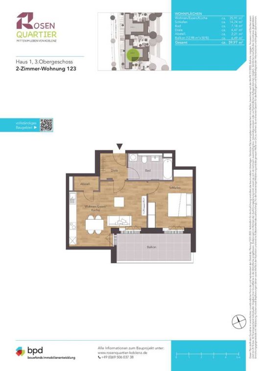 Im Rosenquartier entsteht ein modernes Wohnensemble mit hochwertigen Eigentumswohnungen in zentraler Lage von Koblenz. Die Wohnungen bieten durchdachte Grundrisse, zeitgemäße Architektur und eine Ausstattung, die Komfort und Qualität vereint – ideal für Singles, Paare und Familien oder als Kapitalanlage.