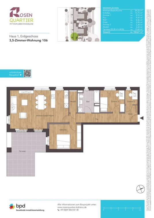 Neue 3,5 Zimmerwohnung mit Terrasse: WE 106