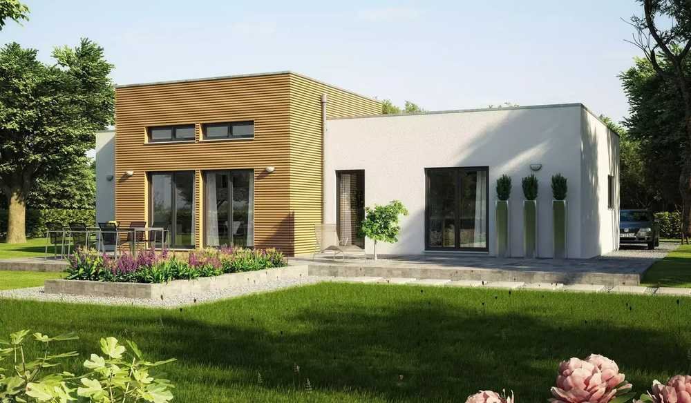Das Bien-Zenker AMBIENCE 111 ist nicht nur ein Fertighaus, sondern ein durchdachtes Zuhause, das ganz nach Ihren Wünschen und Vorstellungen gestaltet wird. Mit einer Wohnfläche von 122,06 m² bietet dieses Haus ausreichend Platz für zwei bis drei Personen. Der offene Wohnbereich ist perfekt angelegt, um einladende Familienmomente zu schaffen und gleichzeitig eine harmonische Verbindung zu den anderen Räumen zu ermöglichen. Die fünf Zimmer, darunter ein Arbeits- und Gästezimmer, schaffen vielseitige Nutzungsmöglichkeiten, während das Dusch-WC und die praktische Diele den Alltag erleichtern. Der Bungalow punktet durch seine barrierefreie Bauweise und ermöglicht Ihnen, alle Lebensbereiche auf einer Ebene zu genießen. Die Architektur des AMBIENCE 111 bietet Ihnen die Freiheit, zwischen verschiedenen Dachformen wie Sattel-, Walm- oder Flachdach zu wählen, wodurch sich das Haus optimal in Ihre persönliche Stilrichtung einfügt.