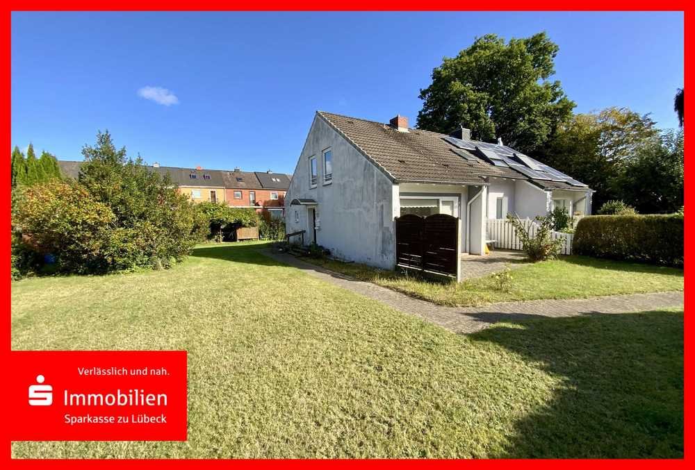 In ruhiger, rückwärtiger Lage steht diese Doppelhaushälfte aus dem Baujahr 1957 auf einem ca. 613 m² großen Erbbaugrundstück der Hansestadt Lübeck.
