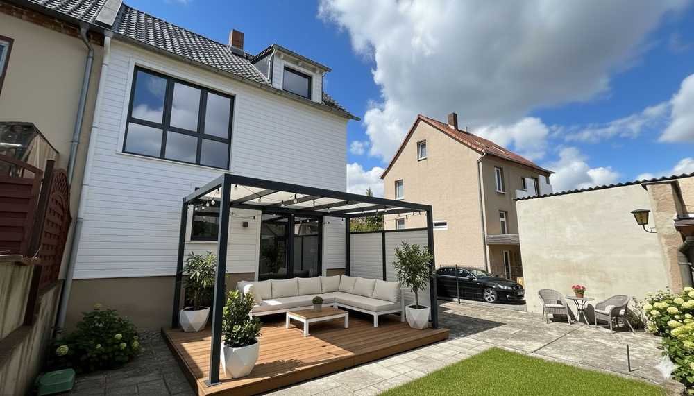Im Inneren erwartet Sie eine Ausstattung, die begeistert: Zwei stilvoll gestaltete Bäder mit elektrischer Fußbodenheizung– ein elegantes Wannenbad und ein modernes Duschbad – bieten Komfort für die ganze Familie. Eine hochwertige Einbauküche lädt zum gemeinsamen Kochen ein. Neue Bodenbeläge in allen Wohnräumen schaffen eine warme, einladende Atmosphäre. Die großzügige Holzterrasse mit Zugang zum Garten bietet ideale Voraussetzungen für entspannte Stunden im Freien.
