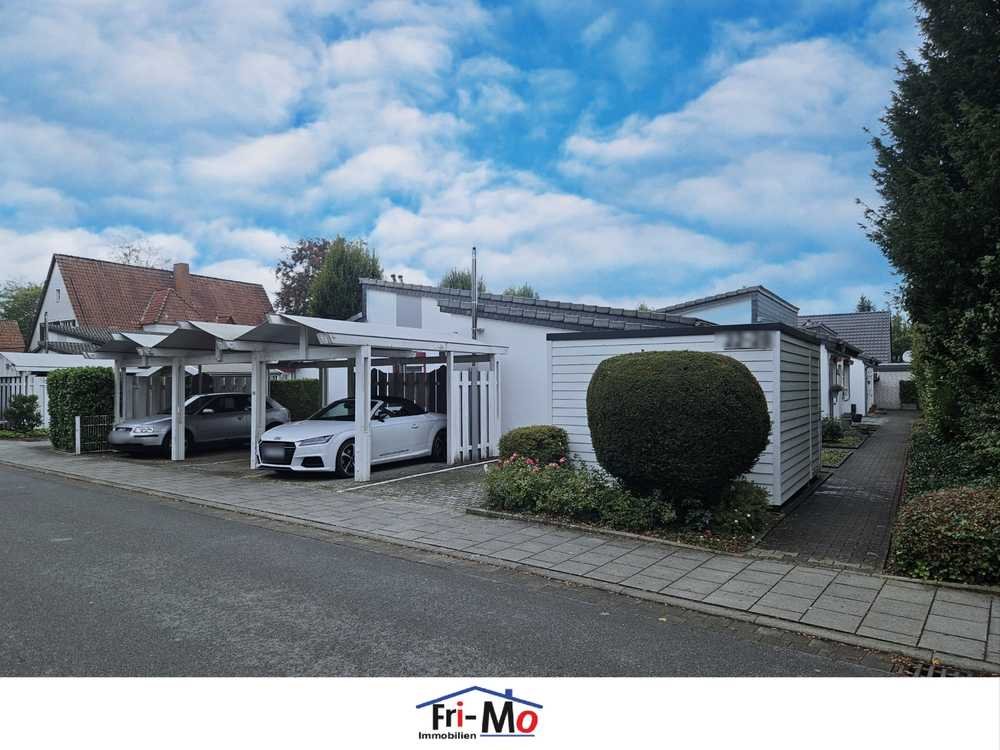 Zum Haus gehören ein Carportstellplatz direkt am Gebäude sowie ein gemeinschaftlich genutzter Abstellraum im Außenbereich, ideal für Fahrräder.
