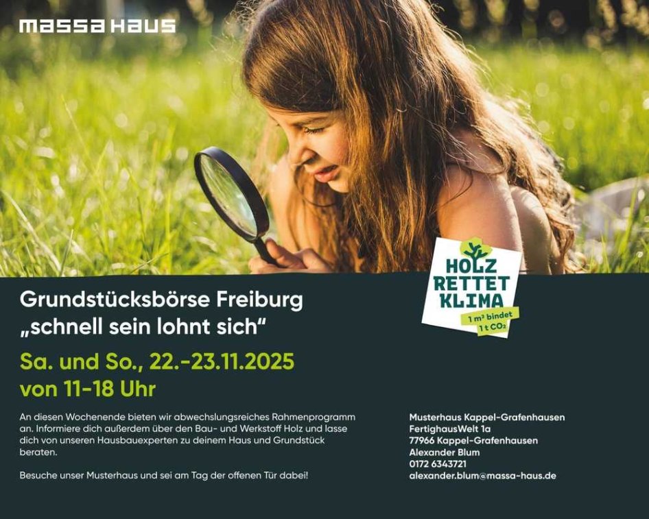 Sie suchen noch das passende Grundstück für Ihr zukünftiges Eigenheim? Dann besuchen Sie unsere Grundstücksbörse und entdecken Sie exklusive Baugrundstücke in attraktiven Lagen – vermittelt direkt durch massa haus.