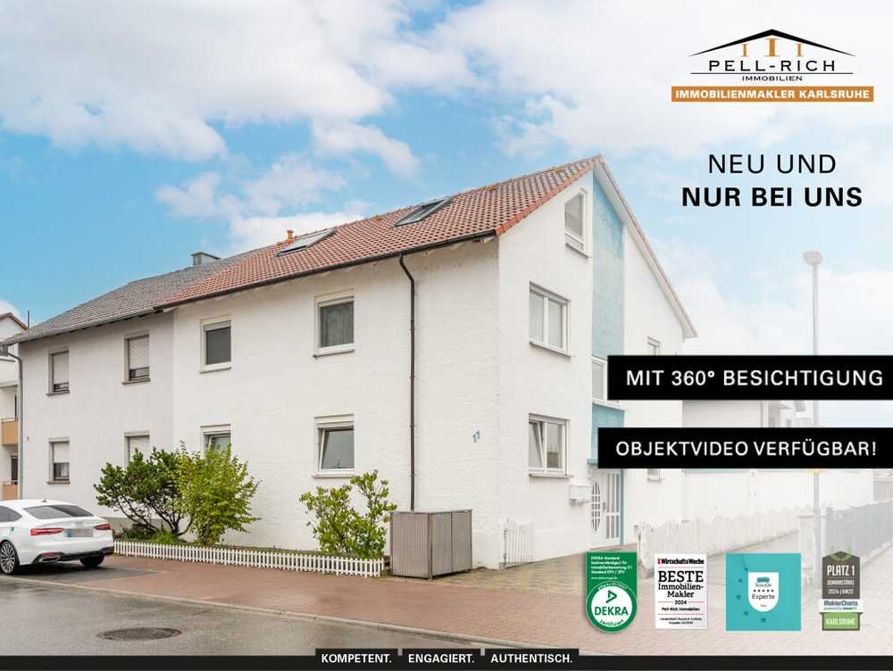 Angeboten wird Ihnen hier eine Eigentumswohnung im Erdgeschoss-Hochparterre eines Zweifamilienhauses in Eggenstein-Leopoldshafen.