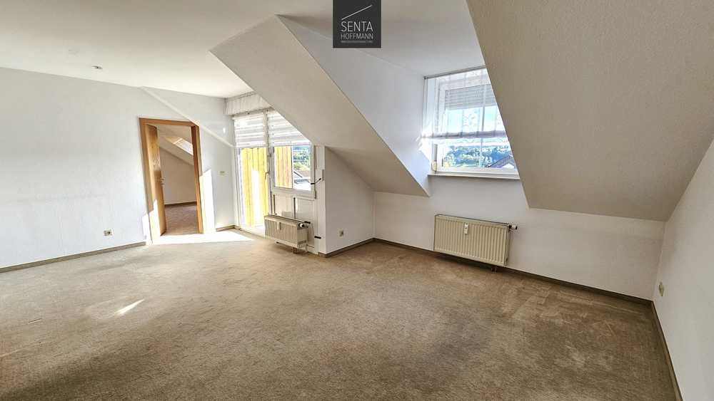 Die zu verkaufende Wohnung liegt im Dachgeschoß des 6 Parteien-Hauses. Insgesamt sind es 33 Treppenstufen bis zum Wohnungseingang; dafür kommt man in den Genuss eines schönen Ausblicks. Bei Eintritt gelangt man in den großzügigen Eingangsbereich/Flur der Wohnung. Auf der linken Seite befindet sich die Küche. Die Küchenmöbel inkl. Geräte sind im Kaufumfang enthalten. Rechts vom Eingangsbereich ist der große Wohn-Essbereich mit Ausgang zum Sonnenbalkon. Vom Wohnzimmmer aus gelangt man in einen weiteren kleinen Raum, der perfekt für ein Büro geeignet ist (Auf dem Grundriss ist er als Abstellraum bezeichnet). Weiter im Flur liegt das Schlaf- und auch das Kinderzimmer. Das Tageslichtbad ist wirklich großzügig geschnitten und bietet neben zwei Waschbecken eine Badewanne, Dusche, ein WC und hier ist auch der Waschmaschinenanschluss. Separat gibt es ein Gäste-WC in der Wohnung. Die Dachschrägen in der Wohnung sind nicht störend, sondern sorgen für ein tolles Raumgefühl und Gemütlichkeit.