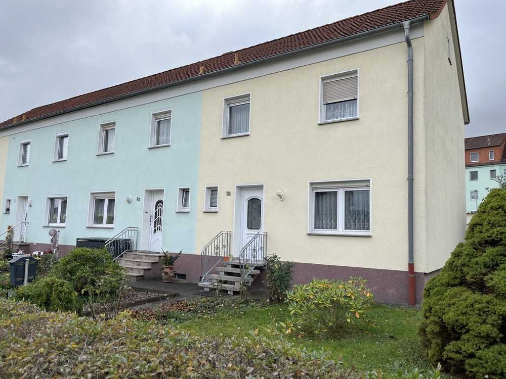 Hinter dem Haus liegt ein schöner Garten mit Garage, Schuppen und Sitzecke – perfekt für entspannte Nachmittage und Grillabende. Vor dem Haus befindet sich ein kleiner Vorgarten, der sich bei Bedarf in PKW-Stellplätzeumbauen lässt.