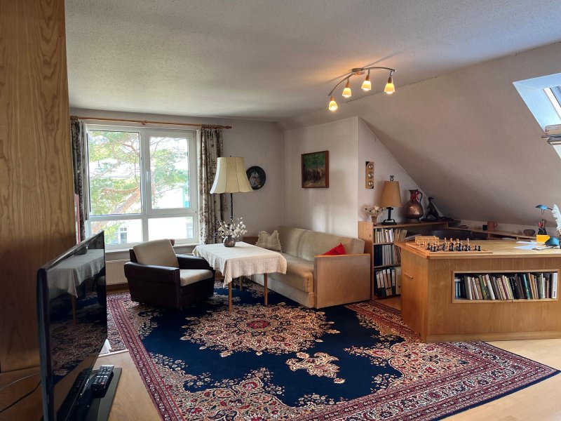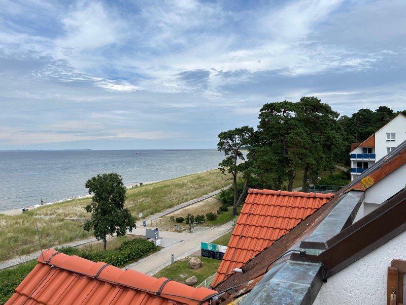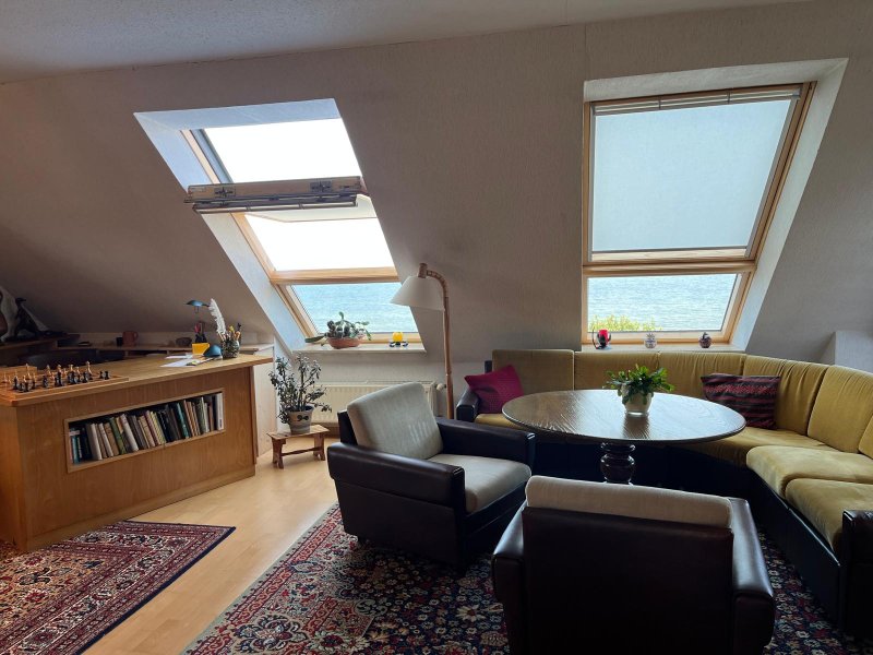 Die Wohnung befindet sich im Dachgeschoss in einem Mehrfamilienhaus mit direktem Blick aufs Wasser.