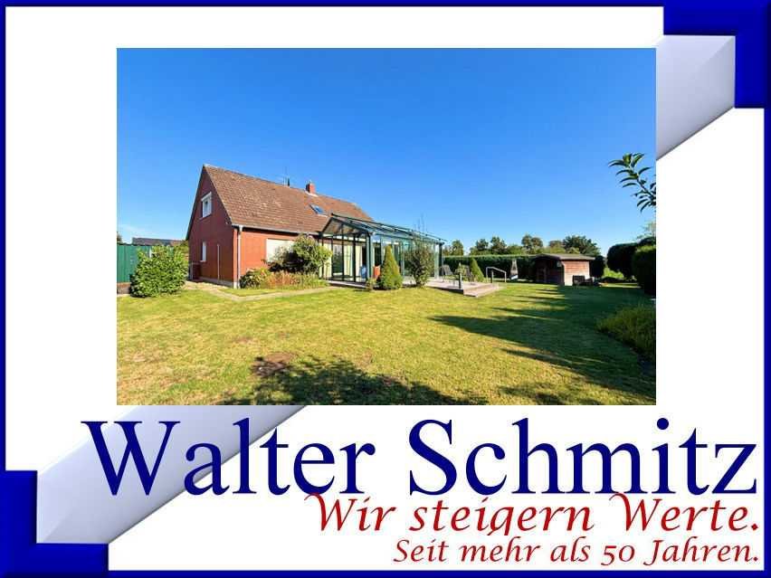 Das Haus verfügt über eine Gesamtwohnfläche von ca. 182 m² und bietet damit ausreichend Platz für Familien oder Paare mit Platzbedarf. Rechts neben dem Haus befinden sich zwei Garagen, während links ein genehmigter Stellplatz für einen Wohnwagen angelegt ist.