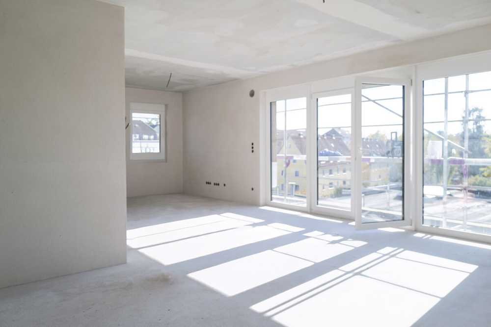 Großzügiger, lichtdurchfluteter Wohnbereich mit bodentiefen Fenstern und offene Küche