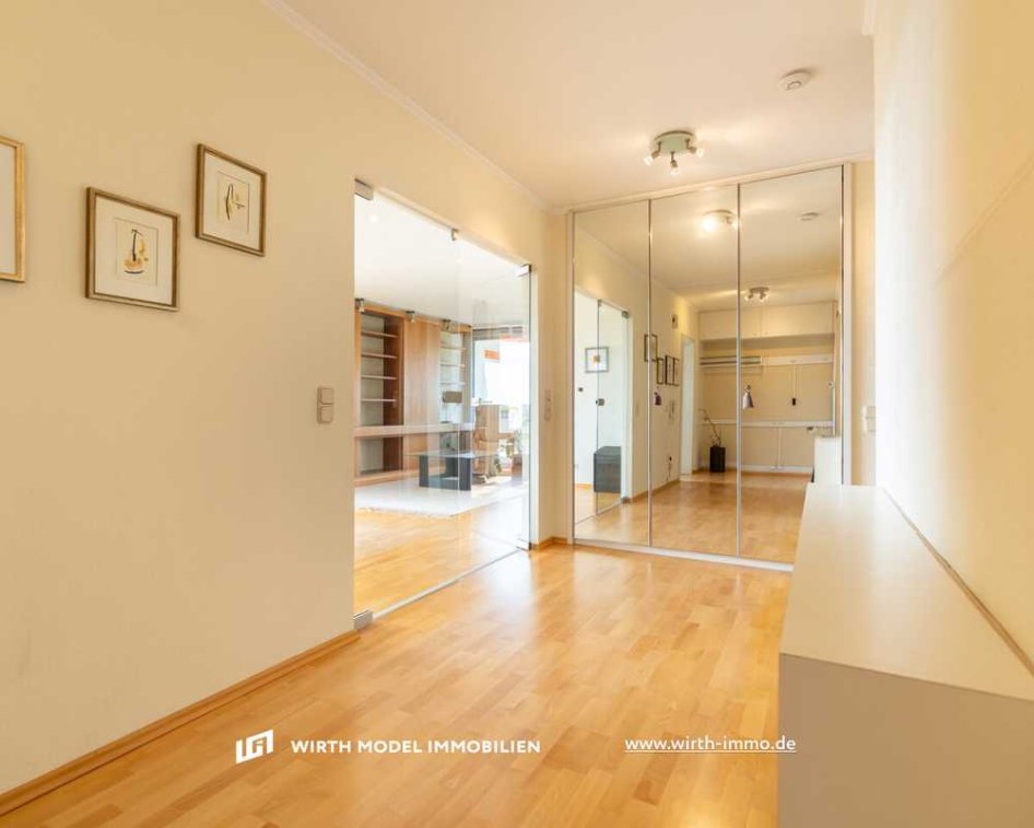 Nach dem Betreten der Wohnung gelangt man zunächst in eine großzügig geschnittene Diele, von der aus sämtliche Räume zugänglich sind.