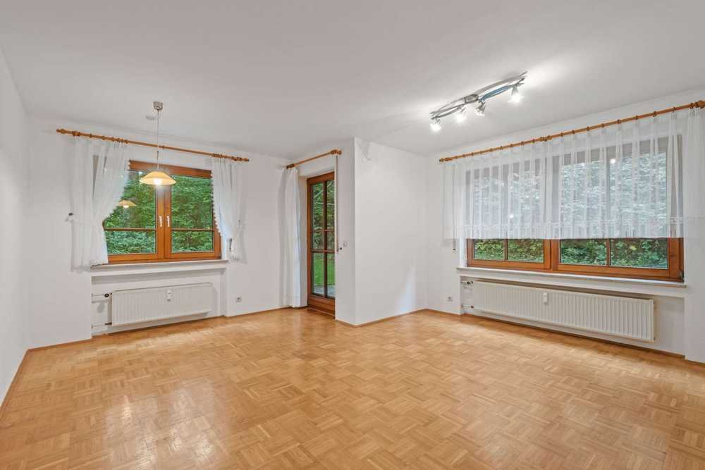 Der offen gestaltete Wohn- und Essbereich bildet den Mittelpunkt der Wohnung. Große Fensterfronten sorgen für ein helles und freundliches Ambiente und schaffen eine wohnliche Atmosphäre. Von hier aus führt eine Terrassentür direkt ins Grüne – ein idealer Platz, um an warmen Tagen zu entspannen oder gesellige Momente im Freien zu genießen.