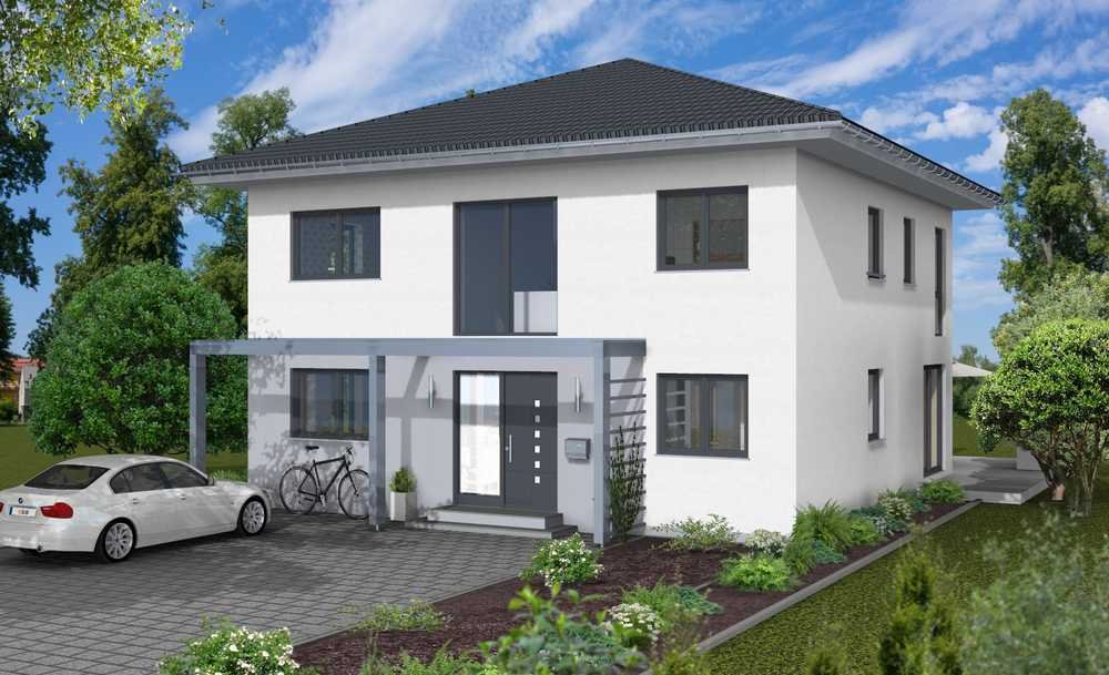 Der Hauspreis inkl. Grundstück bezieht sich auf die Ausbaustufe „schlüsselfertig“; Bodenbeläge und Malerarbeiten sind nicht enthalten, der Keller ist inklusive. Garagen und Außenanlagen sind nicht berücksichtigt.