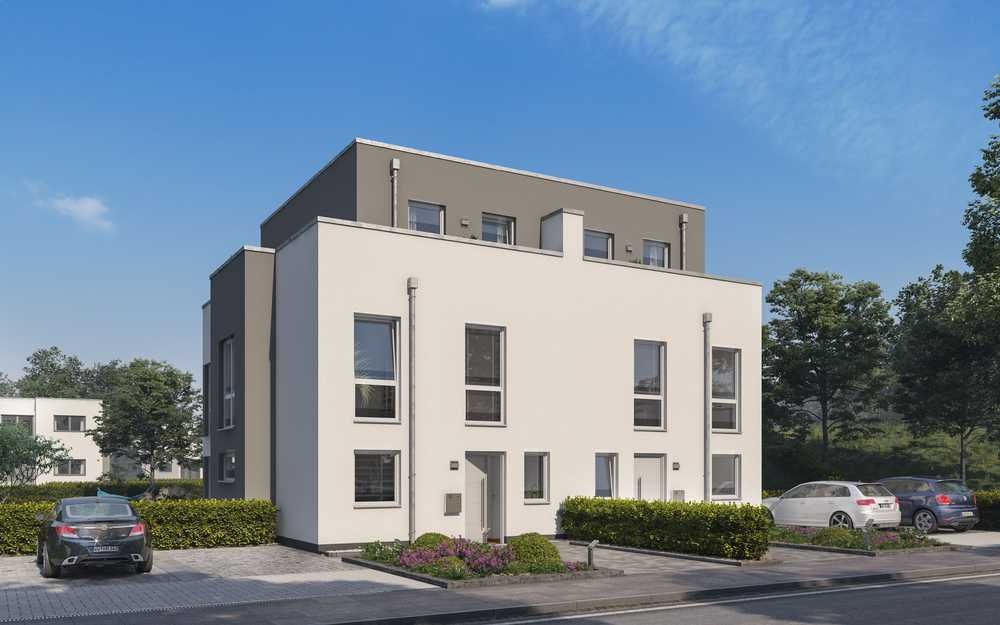 Das Kern-Haus Forneo überzeugt als Doppelhaus auf drei Etagen im Bauhaus-Stil! Perfekt wird das Haus durch die Dachterrasse, die für Ruhe und Entspannung im oft trubeligen Alltag sorgt.