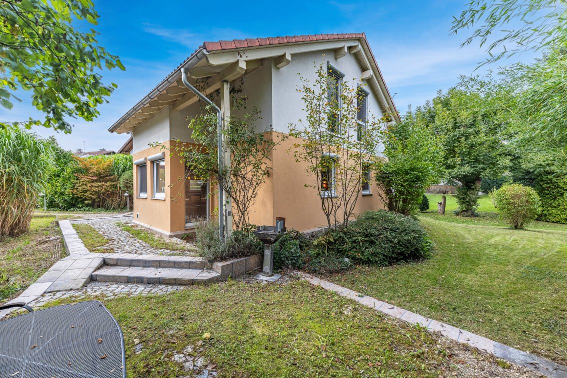 Freistehendes Einfamilienhaus (Baujahr 2006, Holzständerbauweise) mit ca. 125 m² Wohnfläche auf 831 m² Grund. Herzstück ist der großzügige offene Wohn-/Essbereich mit Kaminofen und direktem Bezug in den umlaufenden, eingewachsenen Garten. EG mit Gäste-WC und Dusche (Tageslicht). Im ausgebauten OG/DG drei Schlafzimmer und ein Tageslichtbad mit Wanne & Dusche. Keller mit hellem zusätzlichem Wohnraum (Gäste/Teenies/Homeoffice) sowie weitere Funktionsräume wie Heizung, Waschraum, Abstellraum und Hobbyraum.