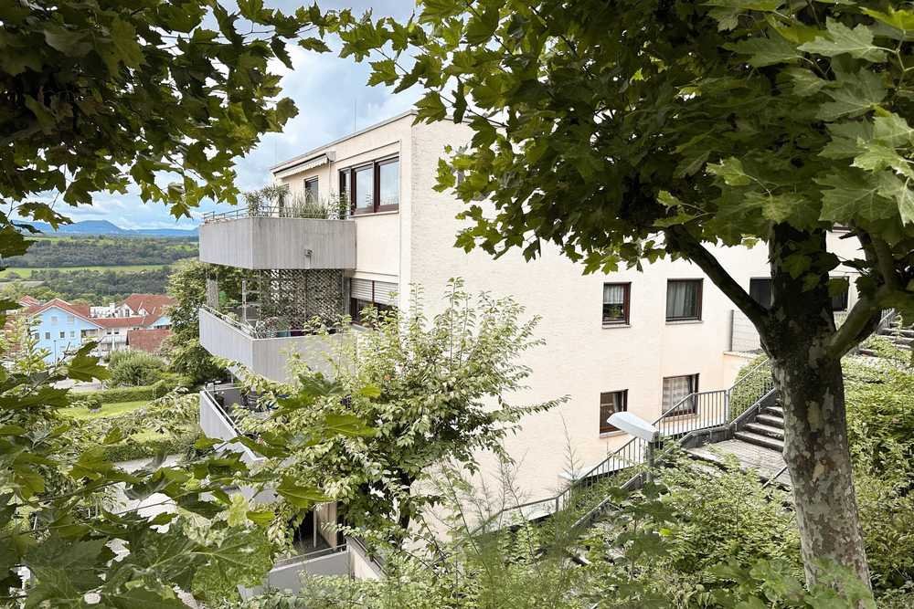 Die Wohnung überzeugt durch ihre Großzügigkeit, den eindrucksvollen Balkon mit Weitblick, die durchdachte Aufteilung und die zwei dazugehörigen TG-Stellplätze.