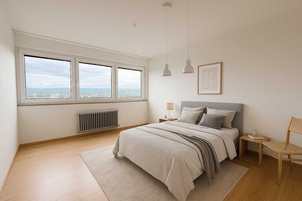 Mit ihrer durchdachten Raumaufteilung, den hellen Wohnbereichen und dem offenen Schnitt vermittelt die Wohnung ein angenehmes und großzügiges Wohngefühl. Große Fenster sorgen für viel Tageslicht und ermöglichen aus mehreren Räumen einen unverbauten Ausblick in die Weite – ein echtes Highlight dieser Wohnung.
