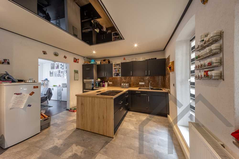 Im Erdgeschoss gelangt man vom Flur nach rechts in die Küche. Von dort öffnet sich der Weg in den großzügigen Wohn- und Essbereich. Der Raum wirkt angenehm hell und bietet Platz für gemeinsames Wohnen und entspannte Stunden.