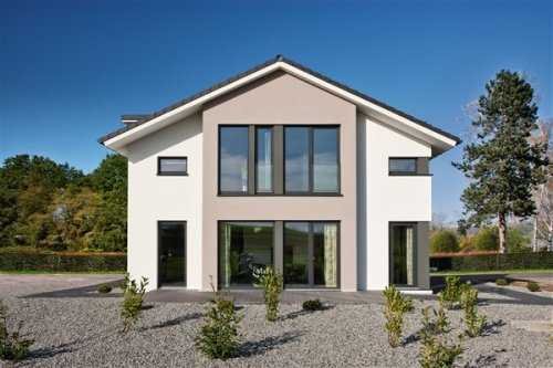 Frisch weht der Hebstwind über die Felder und bringt die goldgelben Blätter zum Rascheln. Was passt besser in diese idyllische Umgebung als ein romantisches Landhaus? Ein Haus mit charakteristischem Zwerchgiebel und weiten Dachüberständen? Kurzum, ein Haus wie dieses moderne Chalet? Ins Auge fällt sofort der Wintergarten-Erker mit Balkon: Mit seiner Holzverschalung setzt er einen angenehmen Akzent zum schlichten, quaderförmigen Baukörper, der sich in eine weiße Putzfassade hüllt. Das helle Holz strahlt Wärme und Freundlichkeit aus, während es zugleich Bezug auf die nachhaltige Bauweise nimmt. Denn der Naturbaustoff bildet die Grundlage für alle Bien-Zenker Häuser. Ergänzt wird das Erscheinungsbild durch großflächige Verglasungen auf beiden Ebenen, die das Schauspiel der Jahreszeiten als eindrucksvolles Panorama in die Innenräume bringen. Das Raumkonzept des Fertighauses orientiert sich an den Bedürfnissen und Gewohnheiten einer vierköpfigen Familie. Lebensmittelpunkt ist das Erdgeschoss, wo sich der großzügige Wohn-, Ess- und Kochbereich befindet, der sich bis in den luftigen Erker hinein erstreckt - der perfekte Platz für einen gemütlichen Ohrensessel oder einen Schaukelstuhl. Durch seine L-Form wird eine direkte Verbindung von Diele und Küche ermöglicht. So muss man nicht erst - vollbepackt mit schweren Einkaufstüten - durch das gesamte Haus laufen, um die Schränke zu erreichen. Über große Fenstertüren schließt sich die Terrasse an, die zum Frühstück unter freiem Himmel einlädt. Die Gemeinschaftsräume nehmen mehr als 33 m² ein. Die restliche Fläche des Erdgeschosses teilen sich ein Technikraum, eine Gästetoilette und eine Garderobe. Über eine platzsparend in das Raumensemble integrierte Treppe gelangt man in das Dachgeschoss, den privaten Rückzugsbereich der Bewohner. Zwei helle Kinderzimmer, ein großer Elternschlafraum mit Ankleidebereich und ein gemütliches Familienbad bieten alles, was man zum Leben und Wohlfühlen braucht.