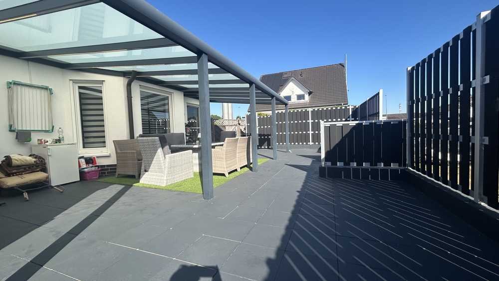 Die überdachte Terrasse ist liebevoll angelegt und ist das ideale Plätzchen für gemütliche Grillabende mit direktem Blick in den grünen Garten.