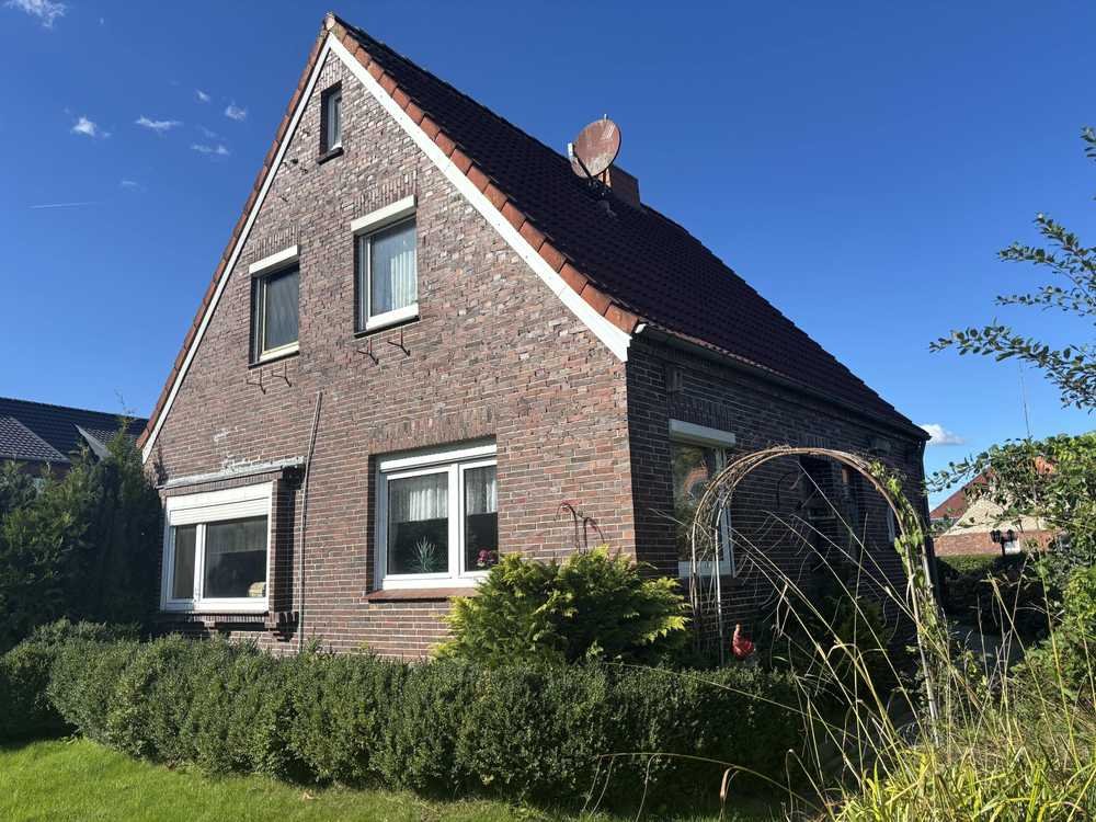 Im historischen Ortskern von Werdum bei Esens befindet sich dieses großzügige Siedlungshaus aus dem Baujahr 1960 auf einem weitläufigen Grundstück von über 1.000 m². Das Haus bietet eine klassische Aufteilung mit insgesamt zwei Wohnebenen: