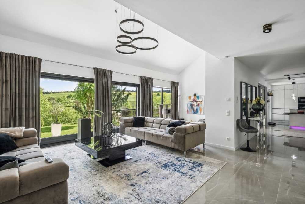 Dieses außergewöhnliche Einfamilienhaus in villaartiger Bauweise vereint stilvolles Wohnen, höchsten Komfort und eine idyllische Lage im begehrten Rheingau-Taunus-Gebiet. Auf vier Etagen bietet das Anwesen rund 446 m² Wohnfläche und 231 m² Nutzfläche auf einem ca. 1.111 m² großen Grundstück – ideal für anspruchsvolle Familien oder Mehrgenerationenkonzepte. Das 1982 massiv errichtete Architektenhaus wurde 1994 energetisch modernisiert und im Jahr 2021 umfassend nach modernsten Standards saniert. Dabei wurden u. a. dreifach verglaste Fenster, eine effiziente Ölheizung, Fußbodenheizung in allen Räumen sowie eine Photovoltaikanlage installiert. Mit insgesamt 14 Zimmern, darunter eine hochwertige Designerküche mit Granit-Arbeitsplatten und mehrere stilvoll gestaltete Bäder, überzeugt das Objekt durch flexible Nutzungsmöglichkeiten – jede Etage kann bei Bedarf als eigenständige Wohneinheit genutzt werden. Der Wellnessbereich im Gartengeschoss ist ein echtes Highlight: Hier erwarten Sie ein beheizter Swimmingpool mit Gegenschwimmanlage, eine Sauna und ein Fitnessraum – ideal für Erholung und Entspannung im eigenen Zuhause. Die weitläufige Gartenanlage auf drei Ebenen wurde parkähnlich angelegt und lässt keine Wünsche offen. Zwei unterirdische Regenwasserspeicher versorgen die Bewässerung, ein Mähroboter übernimmt die Rasenpflege, und ein Gewächshaus bietet Platz für Pflanzen und Gemüse.