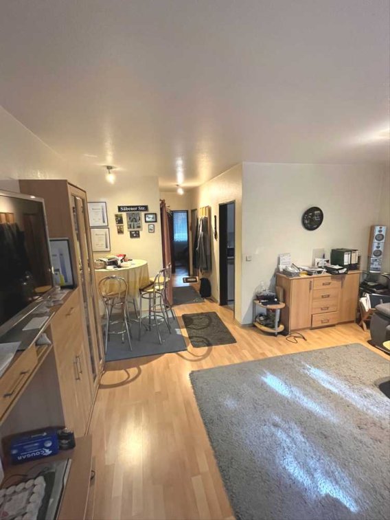Neben einem geräumigen Wohn-und Essbereich mit Ausgang auf den großen Balkon, bietet die Wohnung eine Küche, ein Badezimmer mit Wanne, sowie einem Schlafzimmer.