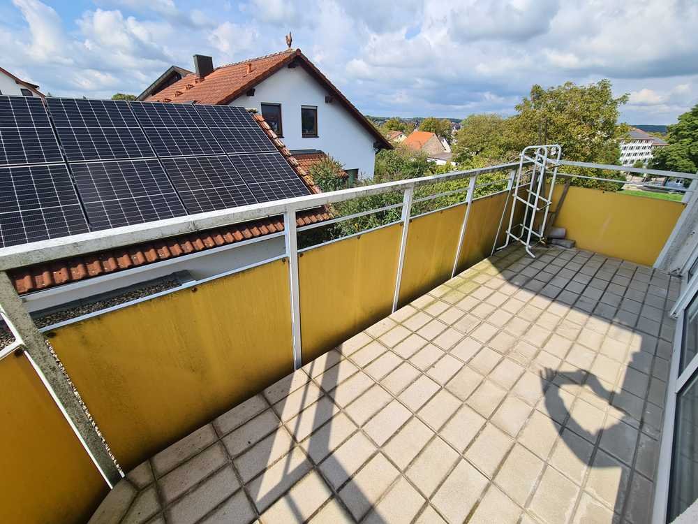 Vom Wohnbereich aus gelangen Sie direkt auf den Balkon, der zum Entspannen im Freien einlädt. Ob ein Frühstück in der Morgensonne oder ein ruhiger Abend mit Blick ins Grüne – hier lässt sich die Freizeit wunderbar genießen.