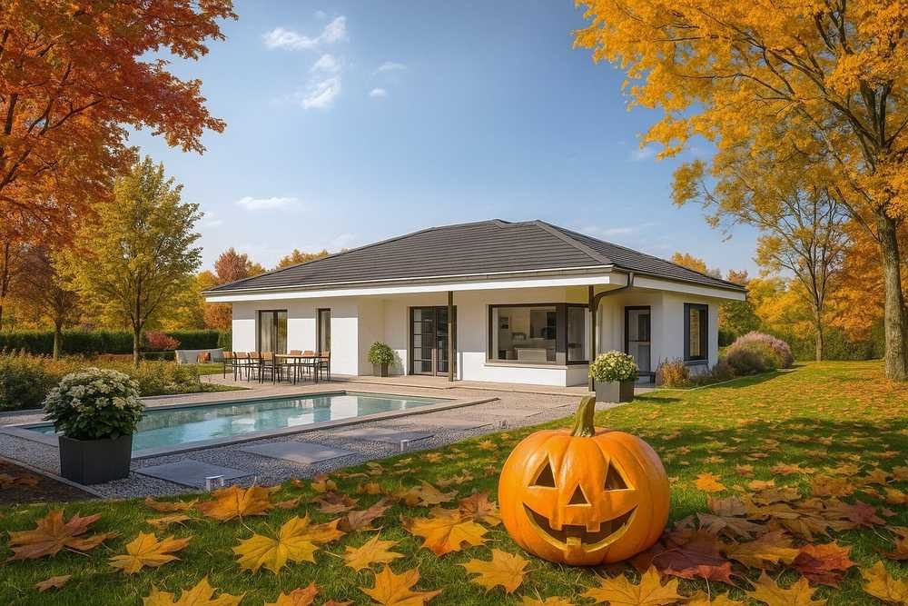 Der Komfort dieses Bungalows zeigt sich nicht nur in der durchdachten Aufteilung, sondern auch in den praktischen Details. Genießen Sie lichtdurchflutete Räume und eine angenehme Wohnatmosphäre, die durch große Fensterfronten entsteht. Der Abstellraum sorgt für Ordnung und Stauraum, während die beiden Badezimmer ideal für Familien sind und den morgendlichen Stress reduzieren. Die Möglichkeit, einen direkten Zugang zur Terrasse zu gestalten, verleiht Ihrem Zuhause einen zusätzlichen Freiraum für entspannte Stunden im Freien und gesellige Grillabende mit Freunden.