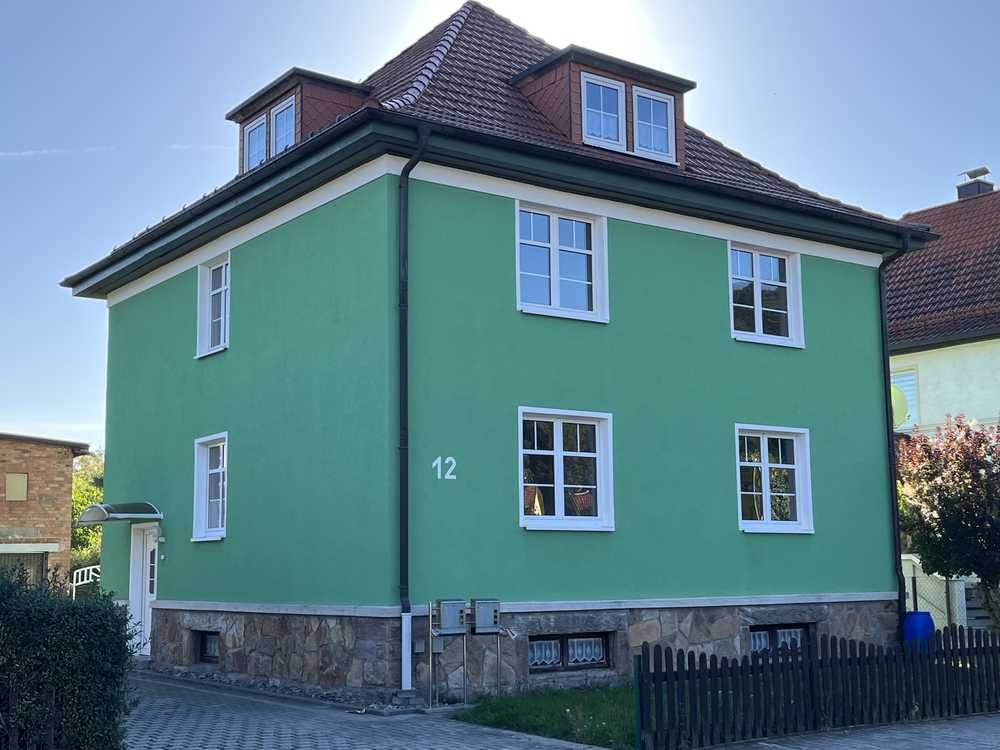 Das Grundstück hat eine Größe von 532 m² und ist mit einem Zweifamilienhaus und massiven Nebengebäude bebaut. Das Wohnhaus wurde ca. 1926 in massiver Bauweise errichtet. Es ist voll unterkellert. Hier befindet sich der Heizraum und weitere Lagerräume. Die Kellerwände bestehen aus Naturstein. Vom Keller führt ein Zugang in den Garten. Im Erdgeschoss und Obergeschoss befinden sich jeweils eine Wohnung. Die Raumaufteilung beider Wohnungen ist identisch. Ebenso die Wohnungsgrößen. Die bauliche Substanz des Hauses und Ausstattung der Wohnungen kann als durchschnittlich bis gut eingeschätzt werden. Nach 1996 wurden mehrere Modernisierungen vorgenommen. Das betrifft im Wesentlichen den Einbau neuer Isolierglasfenster aus Kunststoff, die Erneuerung der Gasheizung, den Einbau der Bäder und Dacheindeckung. Die Elektrik wurde größtenteils erneuert, nur im Obergeschoss noch nicht. Der Einbau einer neuen Haustür aus Kunststoff mit 4-fach-Verriegelung erfolgte 2014, gleichzeitig wurden die Wohnungseingangstüren erneuert. Die Pflasterung des Hauszuganges und Hofeinfahrt sowie der Anstrich der Fassade erfolgten im Jahr 2010 bzw. 2015. Das Garagentor wurde 2015 neu eingebaut und die Kleinkläranlage 2022 erneuert.