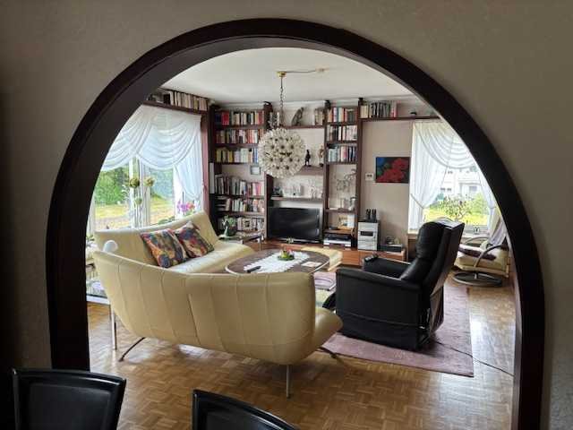 Der Zugang erfolgt direkt über das große Wohnzimmer. Ein Schlafzimmer wurde geöffnet zum Wohnzimmer