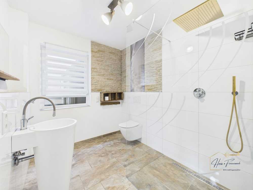 Äußerst praktisch ist das separate Ankleidezimmer, das zusätzlichen Stauraum und Ordnung in den Alltag bringt. Das stilvoll geflieste Badezimmer überzeugt mit einer ebenerdigen Dusche, klaren Linien und modernen Armaturen – ein eleganter Ort zum Wohlfühlen. Für angenehme Wärme sorgt eine energieeffiziente Fußbodenheizung, die in jedem Raum individuell regulierbar ist. Elektrische Rollläden an allen Fenstern bieten zusätzlichen Komfort sowie Schutz und Privatsphäre auf Knopfdruck.