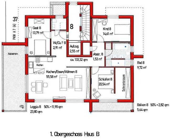 Die projektierte Wohnung hat ca.133 qm Wohnfläche, einen Balkon zum Kurpark hin, sowie eine seitliche Loggia. Zur Wohnung gehört ein geräumiger Kellerraum.