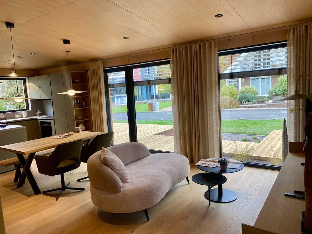 Alle Modulhäuser sind für ein ganzjährig komfortables, ein naturnahes und nachhaltiges Wohnen auf einer Ebene ausgelegt. In den DWELLII Häusern werden ausschließlich Holz aus nachhaltiger Forstwirtschaft und hochwertige Materialien verwendet.