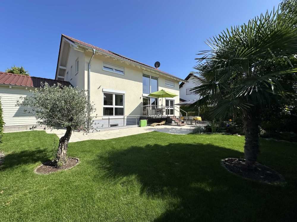 Das im Jahr 2015 erbaute Haus präsentiert sich mit einer Wohnfläche von rund 174 m², verteilt auf 6,5 Zimmer und steht auf einem sonnigen Grundstück von 696 m², das mit viel Liebe zum Detail in einen mediterranen Garten verwandelt wurde.