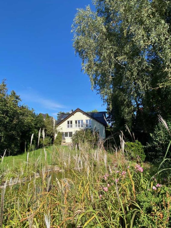Architekten Villa in der Peripherie von Berlin mit Naturteich und gepflegtem großen Garten