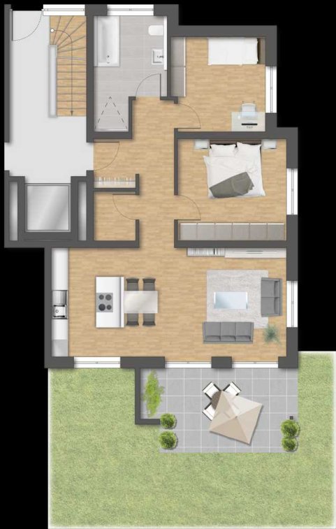 ✓ Alle Wohnungen verfügen über eine Terrasse oder einen Balkon