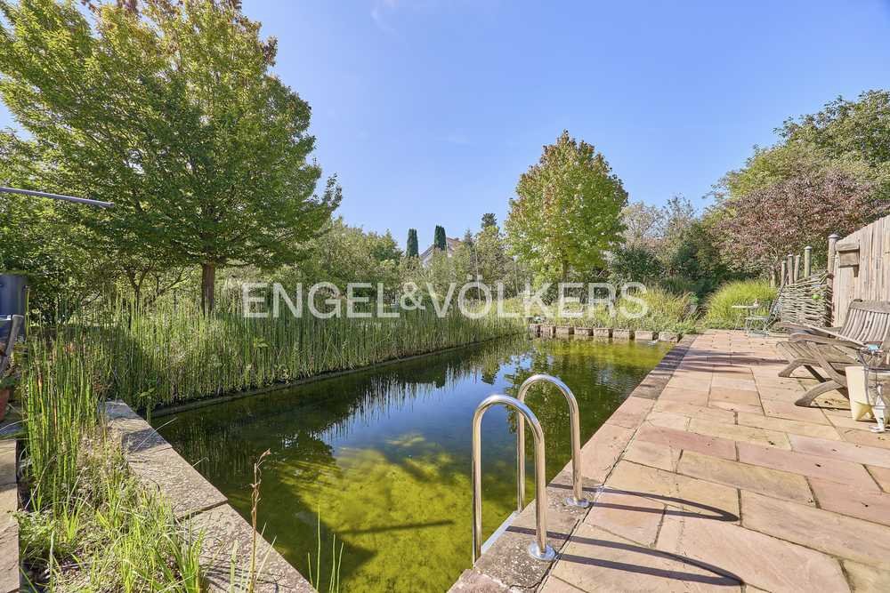Im Obergeschoss setzt sich der hochwertige Eindruck fort: Hier wurden Parkettböden verlegt, und das Hauptschlafzimmer ist mit einem begehbaren Kleiderschrank ausgestattet. Das großzügige Badezimmer sowie das helle Dachstudio bieten zusätzlichen Komfort. Im Jahr 2019 wurde die Veranda ergänzt und die Terrasse vollständig erneuert. Im Garten lädt ein Naturschwimmteich mit einer Tiefe von etwa 1,5 Metern zum Entspannen ein.