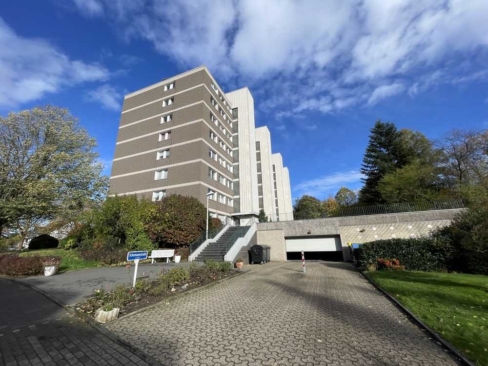 Unter der vorderen Rasenfläche befindet sich eine Tiefgarage, die zum Gebäude gehört. Hier lässt sich bei Bedarf ein Stellplatz anmieten. Die Tiefgarage ist bequem über den Keller (mit Aufzug) zu erreichen.