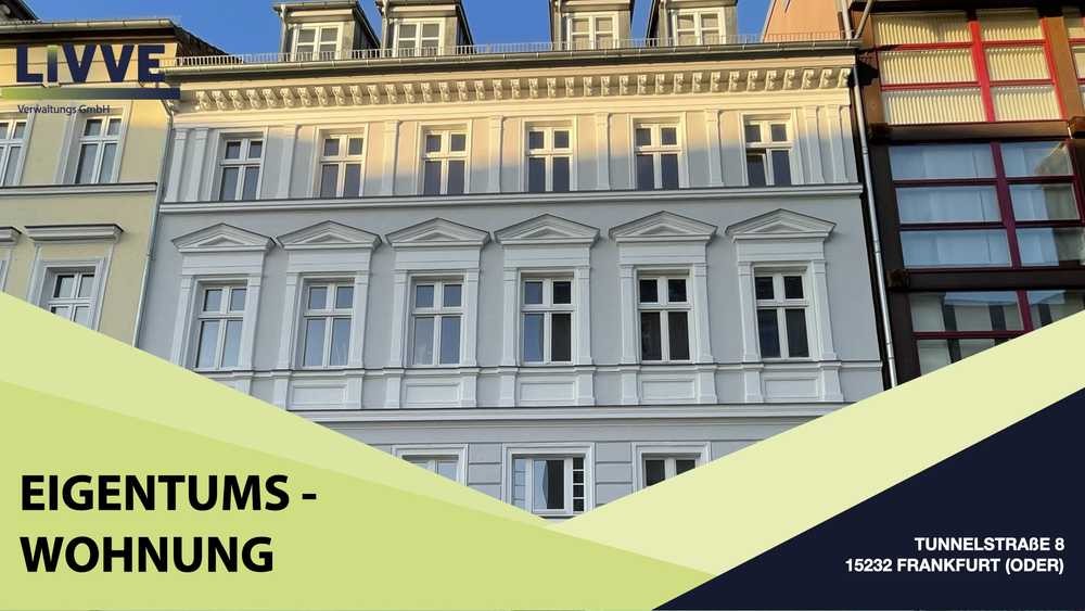 Die zum Verkauf stehende 2-Zimmer-Eigentumswohnung befindet sich im ersten Obergeschoss eines charmanten Altbaus aus dem Jahr 1900 in der Tunnelstraße 8 in Frankfurt (Oder). Das Gebäude umfasst drei Geschosse sowie ein ausgebautes Dachgeschoss und präsentiert sich in gepflegtem Zustand. Die Wohnung verfügt über ca. 7 m² großen Balkon, ein Badezimmer mit Tageslicht, eine Küche sowie eine zusätzliche Abstellkammer im Treppenhaus. Ein Kellerraum in der Remise bietet weiteren Stauraum. Die Beheizung erfolgt über eine zentrale Gasheizung mit integrierter Warmwasseraufbereitung.