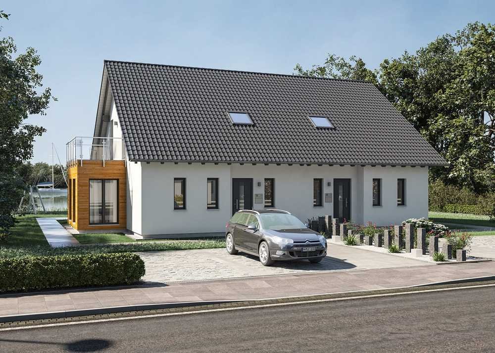 Ein Doppelhaus benötigt weniger Grundstücksfläche und schafft dennoch großzügige Gestaltungsvarianten.