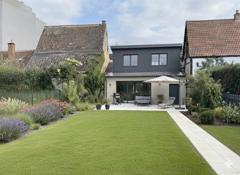 Fotos des Grundstücks sowie zwei mit KI erstellte Visualisierungen wurden beigefügt. Diese sind nicht vollständig realitätsgetreu, vermitteln aber einen guten Eindruck des möglichen Neubaus. Das geplante Gebäude entspricht grundsätzlich den Visualisierungen, allerdings wurde in der genehmigten Bauvoranfrage die Gebäudehöhe an die Nachbarbebauung angepasst. Die im KI-Bild dargestellte niedrigere Höhe sowie die Darstellung von Einfahrt, Garage und Parkplätzen dienen nur zur Veranschaulichung. Erste Ideen zur Raumaufteilung liegen vor; die Grundfläche im EG kann bis zu ca. 140 m² betragen und auch als Bungalow realisiert werden. Die Bauvoranfrage ist bereits genehmigt.