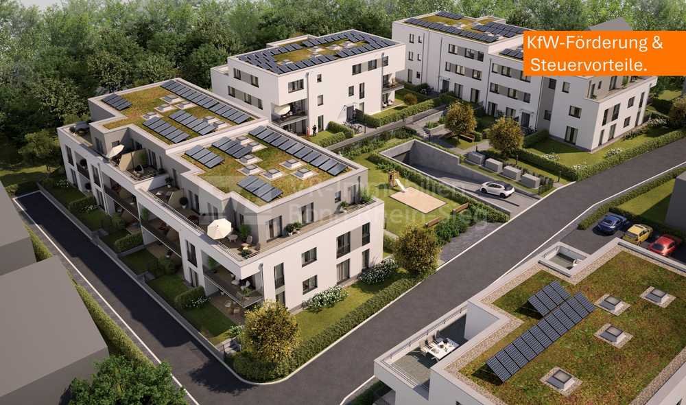 Wohneinheit 29 erstreckt sich über beeindruckende 108,48 m2 Wohnfläche über das Dachgeschoss. Den Mittelpunkt bildet ein großzügiger Wohn-/Essbereich mit offener Küche und angrenzendem Hauswirtschaftsraum, der Anschlussmöglichkeiten für Waschmaschine und Trockner bereithält. Vom Wohnbereich gelangen Sie auf eine weitläufige, nach Südwesten ausgerichtete Dachterrasse mit idyllischem Blick auf die umliegende Landschaft. Die ruhige Ecklage sorgt dabei für einen privaten Rückzugsort unter freiem Himmel – ideal für entspannte Stunden im Freien. Die Wohnung verfügt über ein großzügiges Schlafzimmer sowie zwei weitere Zimmer, die dank ihrer nahezu identischen Größe vielseitige Nutzungsmöglichkeiten bieten. Bodentiefe Fensterelemente sorgen in allen Zimmern für reichlich Tageslicht und eröffnen den Blick auf einen begrünten Innenhof. Ein stilvoll gestaltetes Badezimmer mit hochwertiger Badewanne sowie ein separates Duschbad vereinen Funktionalität mit modernem Design.