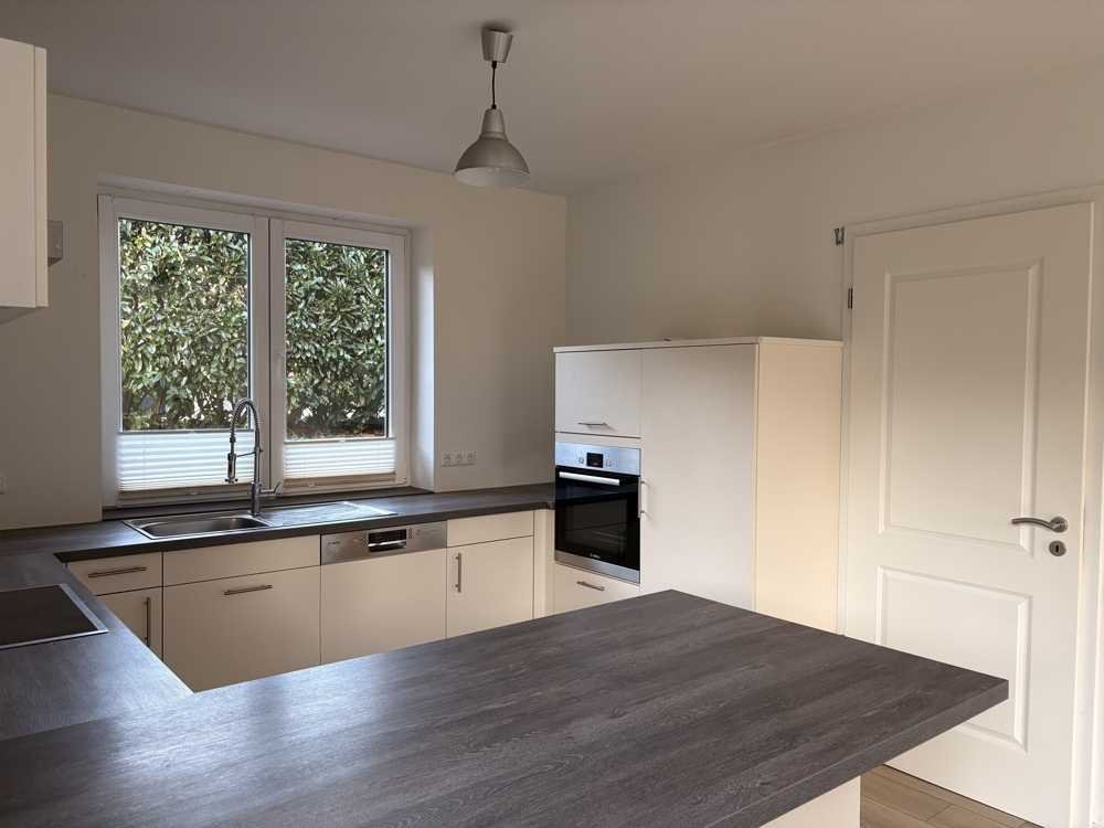 Die hier zum Verkauf angebotene Doppelhaushälfte wurde im Jahre 2017 auf einem ca. 390 m² großen und nach Süd-West ausgerichteten Grundstück errichtet. Die massive Bauweise stellt ein solides Objekt dar, welches voll unterkellert ist und über eine Ausbaureserve im Dachgeschoss verfügt. Das Haus liegt ruhig in dritter Reihe und ist von hübschen freistehenden Häusern umgeben. Die derzeitige Wohnfläche umfasst 125 m², ist aufgeteilt in 5 Zimmer und verteilt sich über drei Ebenen. Die Nutzfläche im Bereich des Vollkellers und Dachbodens umfasst eine Größe von ca. 60 m². Das Haus ist modern und hochwertig ausgestattet, besonders zu erwähnen sind die extrem hohen Decken, die für ein besonderes Raumklima sorgen. Eine hochwertige und zeitlose Einbauküche inklusive Tresen, viel Stauraum sowie eine ausreichende Arbeitsplatte bilden den Mittelpunkt dieses Bereiches. Die Küche verfügt über sämtliche erforderlichen elektrischen Geräte des täglichen Bedarfs. Vom angrenzenden Essbereich aus betreten Sie eine der beiden Terrassen, die sich als Frühstückterrasse nahezu anbietet. Der Fußboden im kompletten Erdgeschoss ist mit pflegeleichten Fliesen in Holzoptik ausgelegt und wird mittels Fußbodenheizung erwärmt.