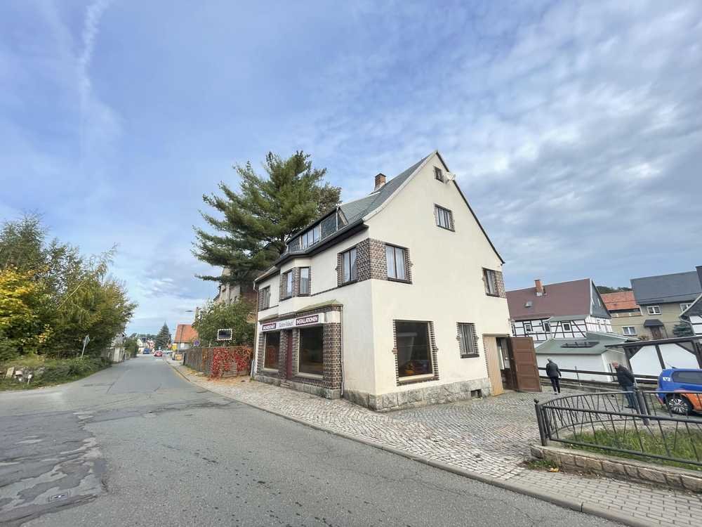Zum Verkauf steht eine Wohn- und Geschäftshaus, welches jeder Mülsener kennt. Unweit der B173 in Jacob gelegen kann hier im Erdgeschoss ein Geschäft jeglicher Art entstehen und darüber wohnen Sie auf 120 m². Das Objekt an sich verfügt über drei Garagen. Die beiden freistehenden verfügen über eine Toröffnung von 241* 240 sodass hier auch größere Fahrzeuge Platz finden. Das Haus an sich verfügt aktuell über eine Gasheizung und die Möglichkeit des Kamines. Der Zählerkasten des Stromes ist bereits saniert. Dringend zu sanieren ist das rückwärtige Dach, wie auf den Drohnenbild zu sehen ist.