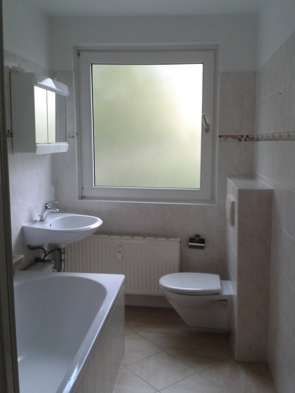 Die Wohnung wird durch eine Zentralheizung beheizt und das Warmwasser über einen Durchlauferhitzer erwärmt.
