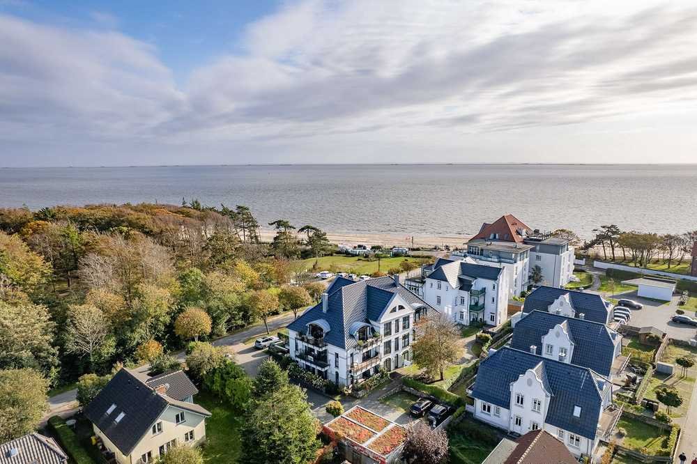 Diese exklusive Penthouse-Wohnung befindet sich im zweiten Obergeschoss sowie im Galeriegeschoss des im Jahr 2015 erbauten Mehrparteienhauses in der Badestraße 110a in Wyk auf Föhr. Die Wohnfläche von ca. 133 m² der Wohnung zeichnet sich durch eine ausgezeichnete Lichtdurchflutung, eine moderne Gestaltung und einen großzügig geschnittenen Grundriss aus. Die offene Raumgestaltung, die hohen Decken und die bodentiefen Fensterfronten erzeugen ein besonders helles und freundliches Wohnambiente. Die Residenz erstreckt sich über zwei Stockwerke und verfügt über insgesamt vier Zimmer sowie vier Balkone, die nach allen Himmelsrichtungen ausgerichtet sind. Zwei der Balkone bieten einen atemberaubenden Blick auf das Meer. Beide Schlafzimmer sind mit einem eigenen Duschbad ausgestattet, was ein hohes Maß an Komfort und Privatsphäre gewährleistet. Hochwertige Materialien, eine durchdachte Raumaufteilung sowie eine stilvolle Innenausstattung unterstreichen den exklusiven Charakter des Objekts. Der Fahrstuhl gewährleistet eine bequeme Erreichbarkeit der Wohnung. Zudem ist sie mit einer Fußbodenheizung ausgestattet, die für zusätzlichen Komfort sorgt.